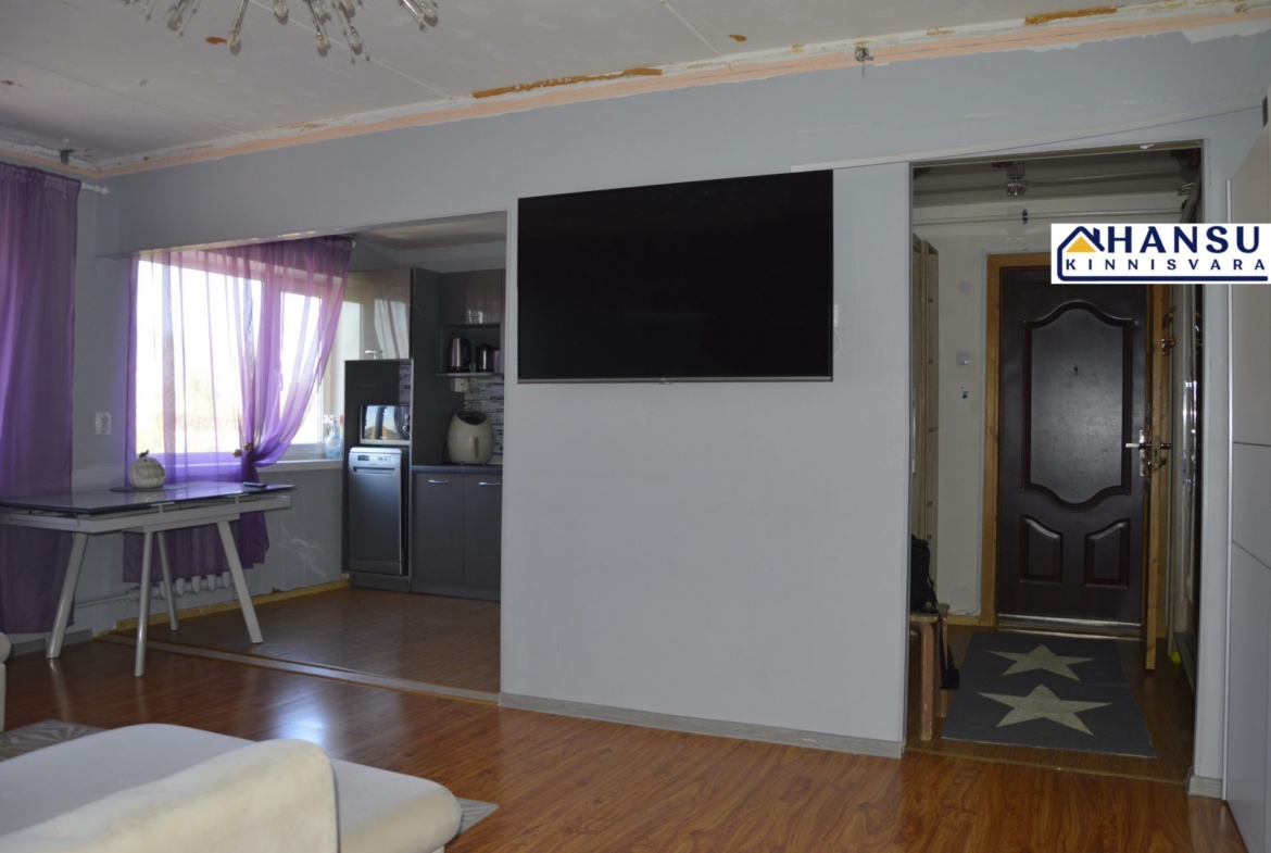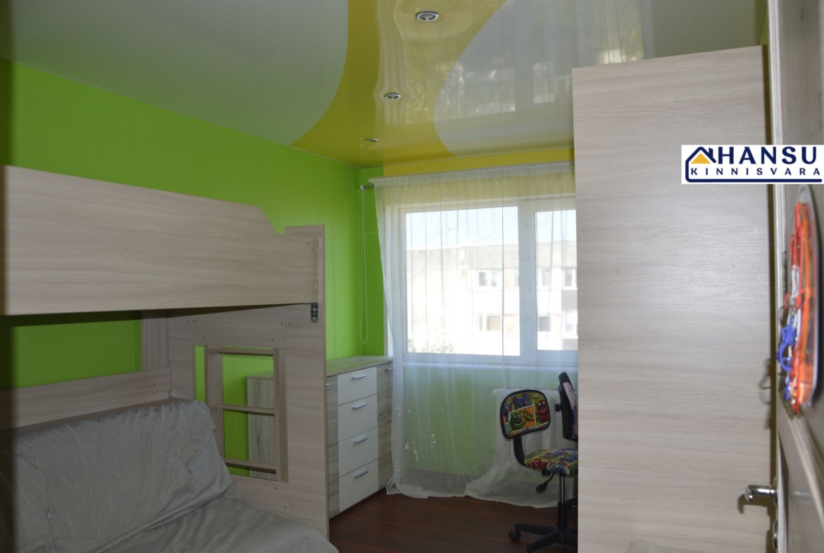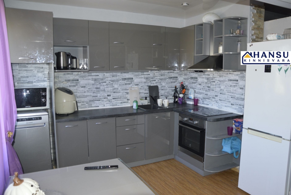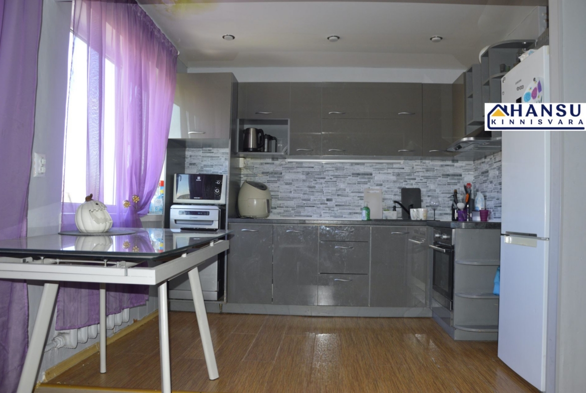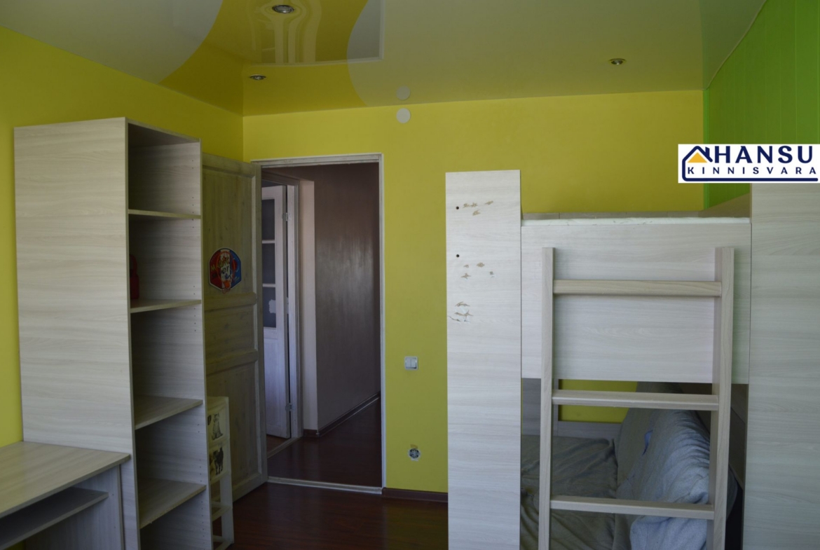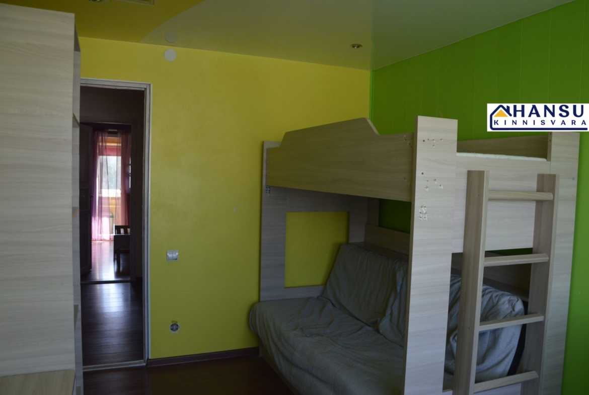 SISUSTUS: Kõik tehnika ja mööbel jääb korterisse ( pesumasin, TV, nõudupesumasin, külmkapp, elektripliit jne). Kanalisatsioon on täiesti vahetatud, elektrijuhmestik on osaliselt vahetatud. Korter on heas korras, võiks aga teha lisa renoveerimist (mõned seinad ja laed elutoas).