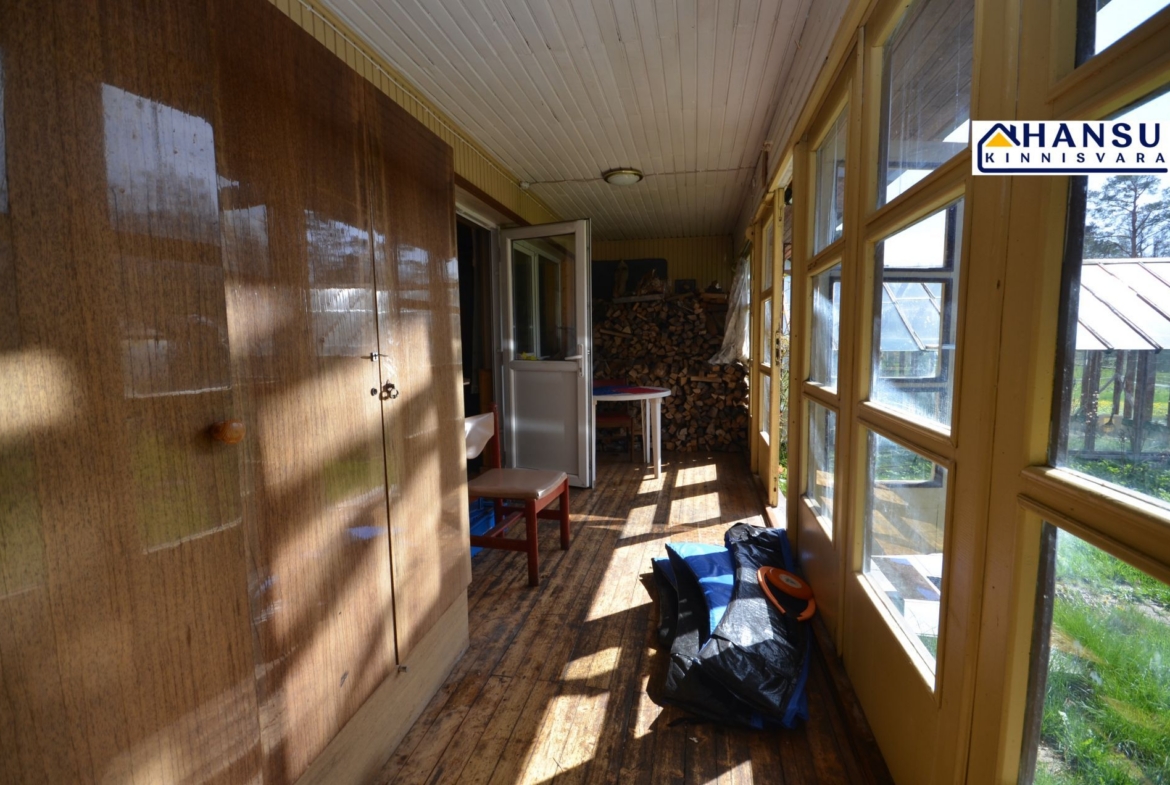 Avar esik (veranda), elutuba kaminaga, 2 magamistuba, köök puupliidiga, terass. teisel maja poolel asub leiliruum koos dušši nurgaga.