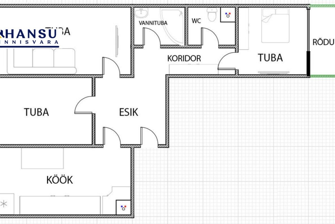 Korteri köetav pind on 64,8 m2 millele lisandub ca 3 m2 rõdu.