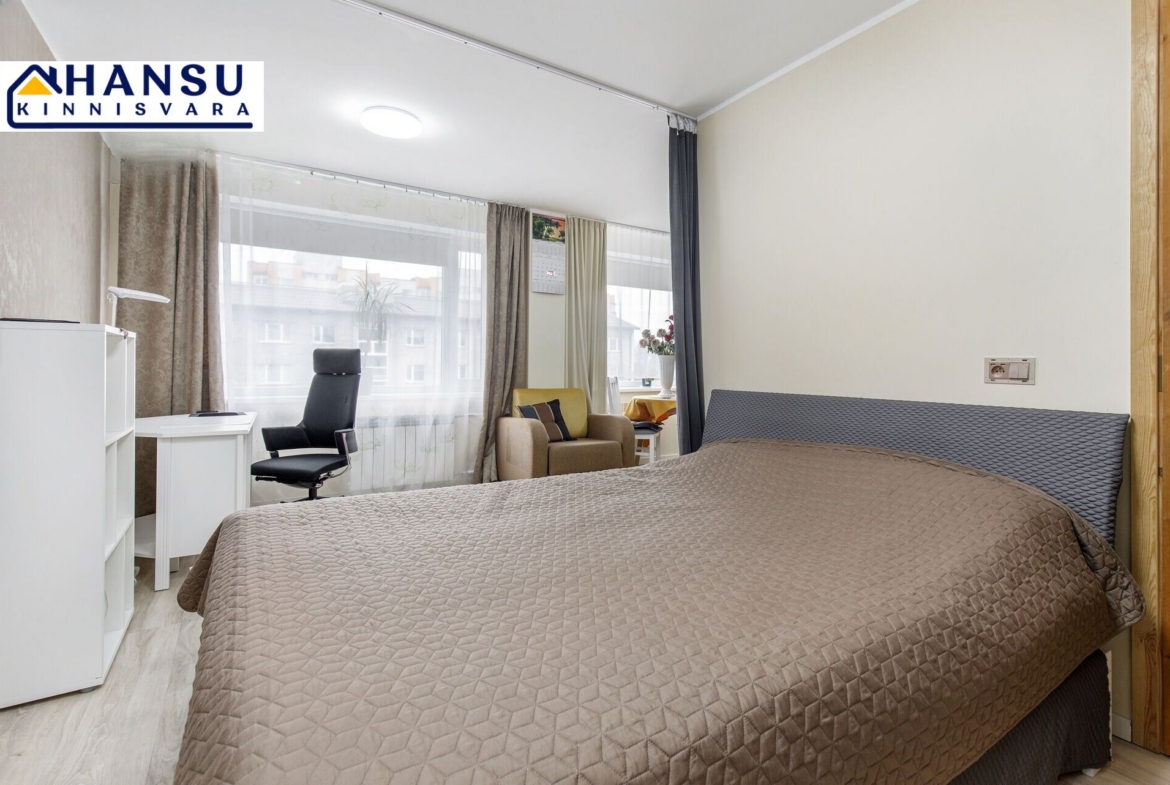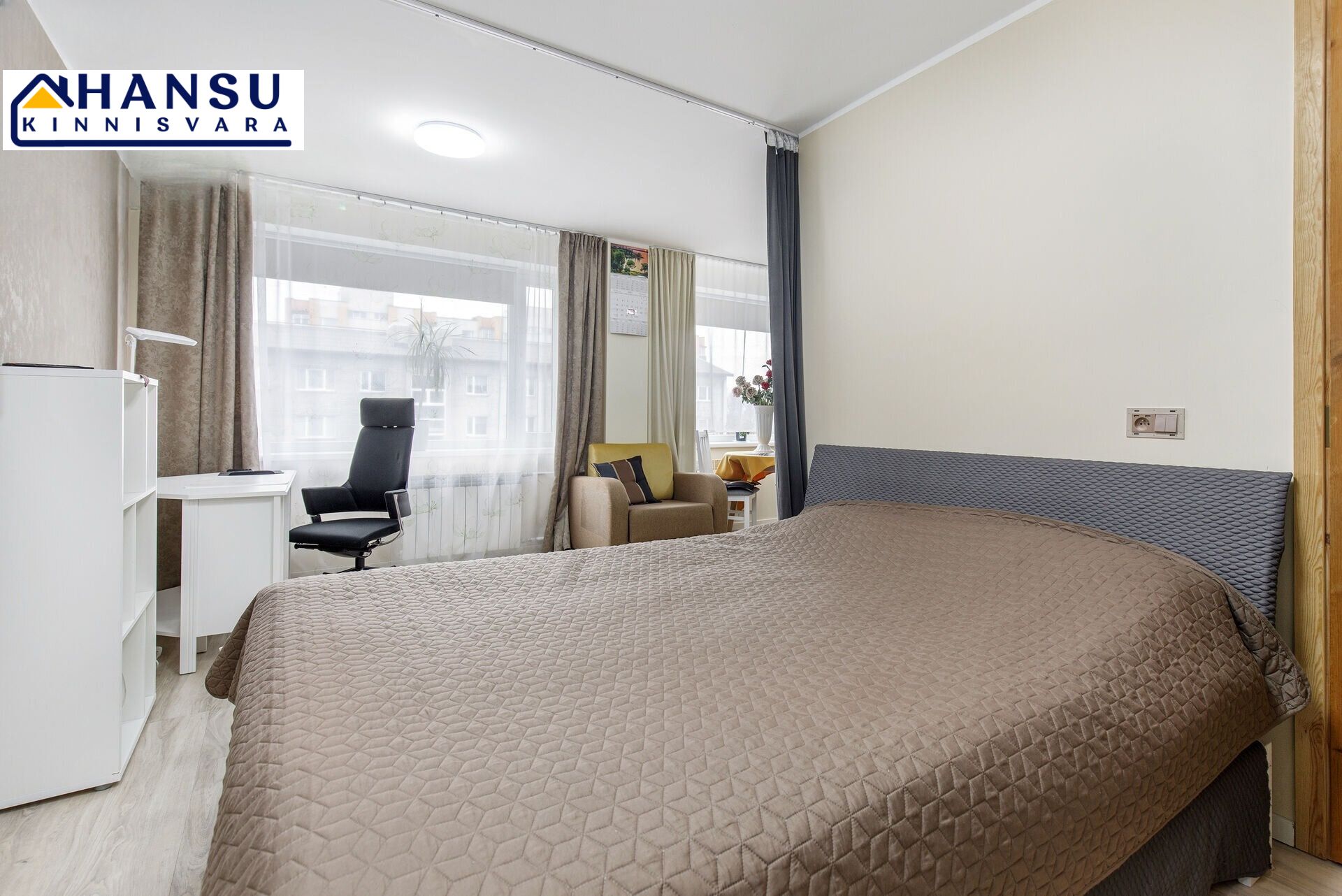 Korteril on originaalne planeering: esik, vannituba koos boileriga, köök koos avara sööginurgaga ning väljapääs magamistuppa, kus asub mahukas sisseehitatud garderoob. Korteri aknad avanevad õhtupäikese poole.
