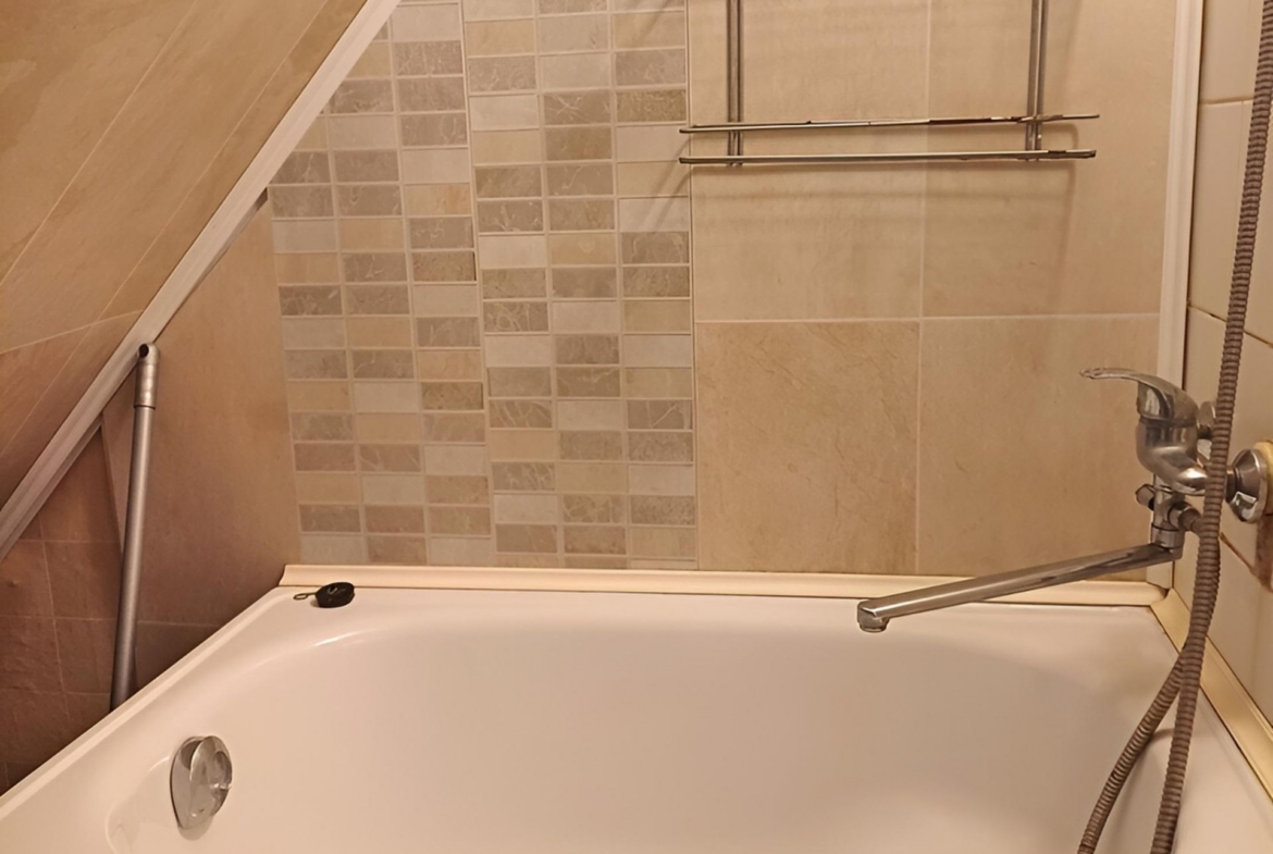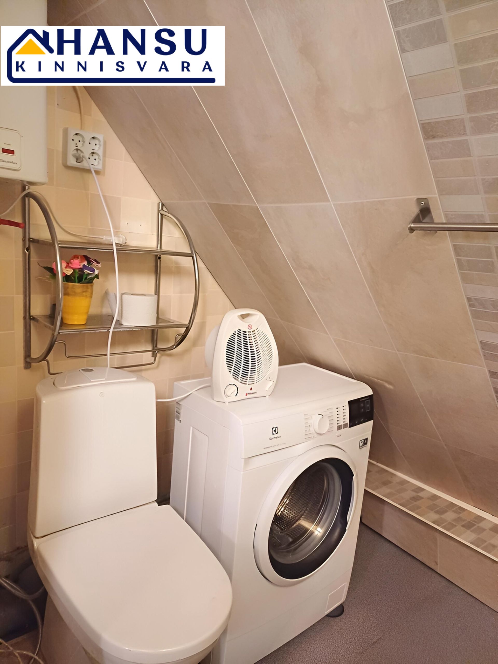 Korter on osaliselt möbleeritud: olemas on diivan, pliit ja pesumasin.