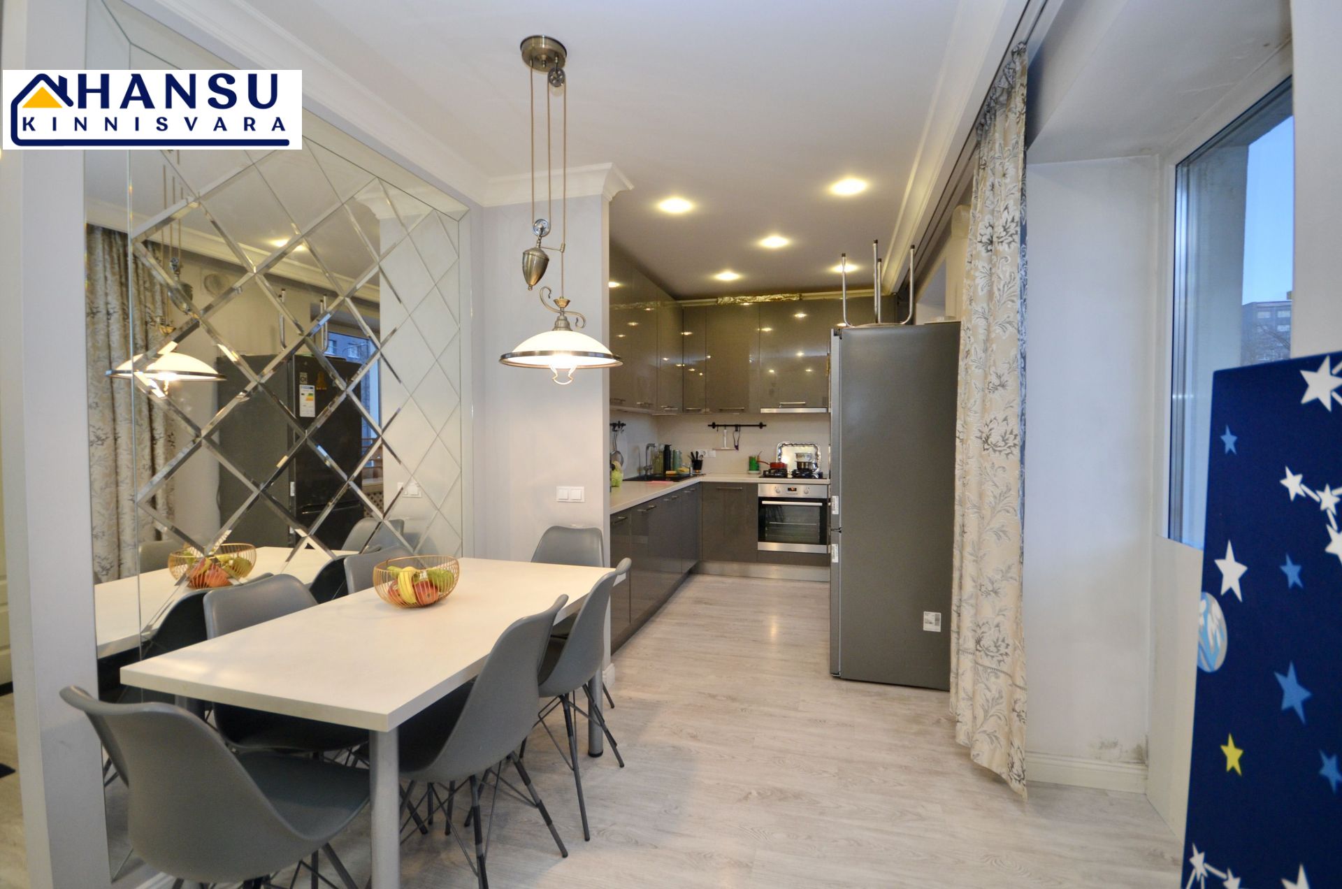 Korterisse jääb kogu vajalik mööbel ja kodutehnika: nõudepesumasin, pesumasin, gaasipliit, külmkapp ning suured garderoobikapid. Voodid jäävad kokkuleppel.