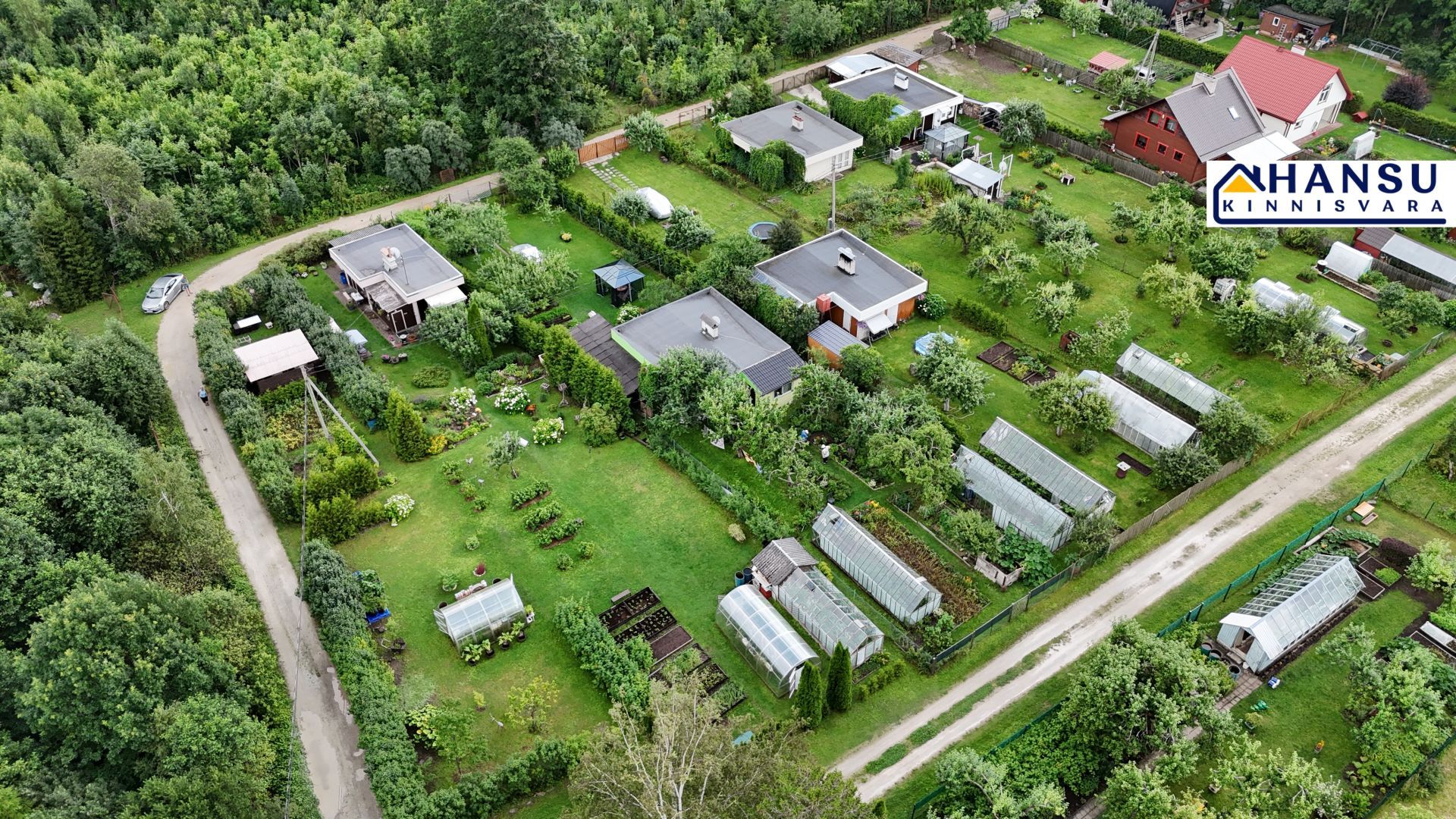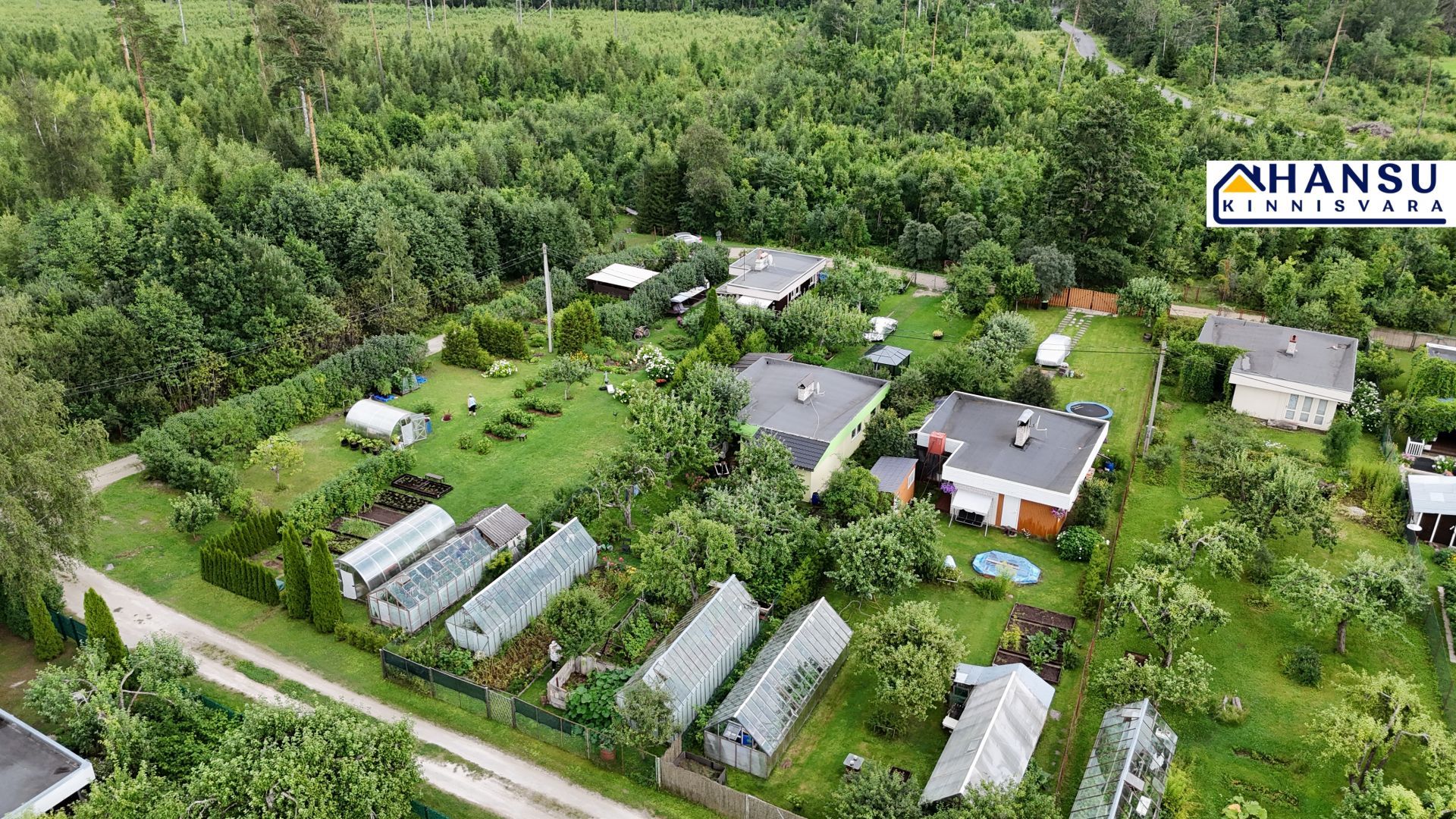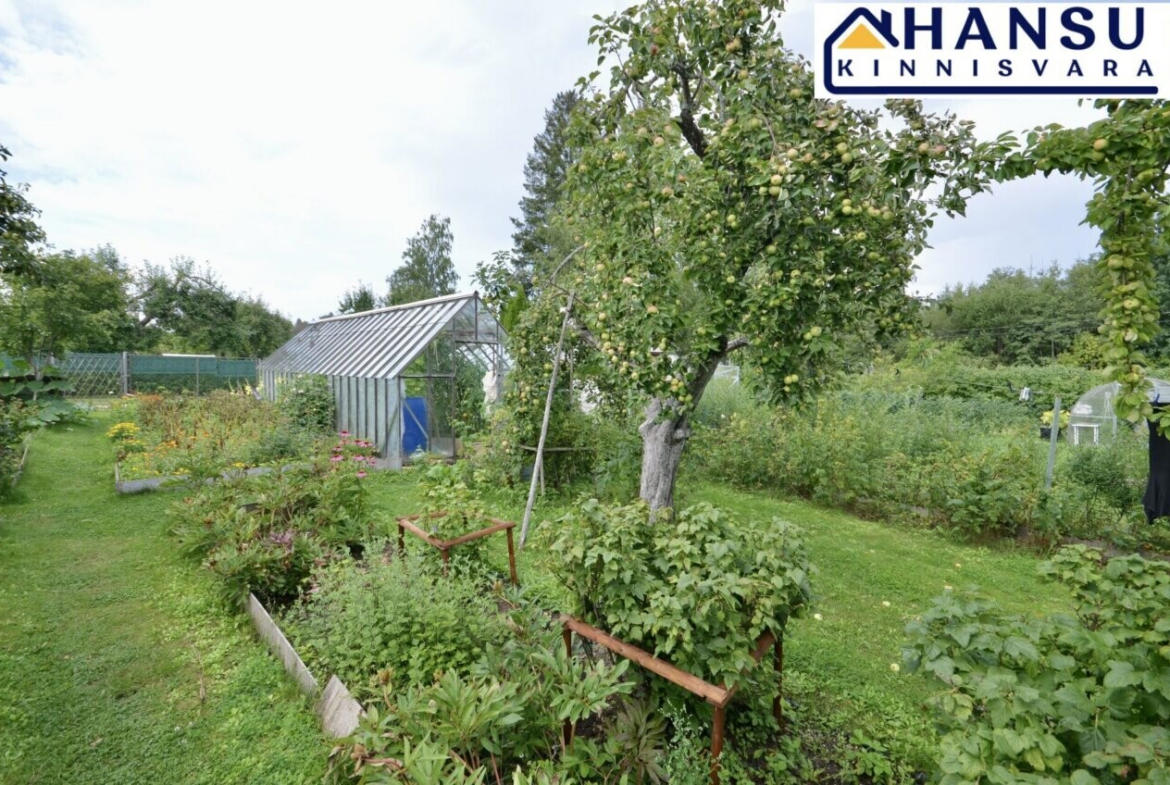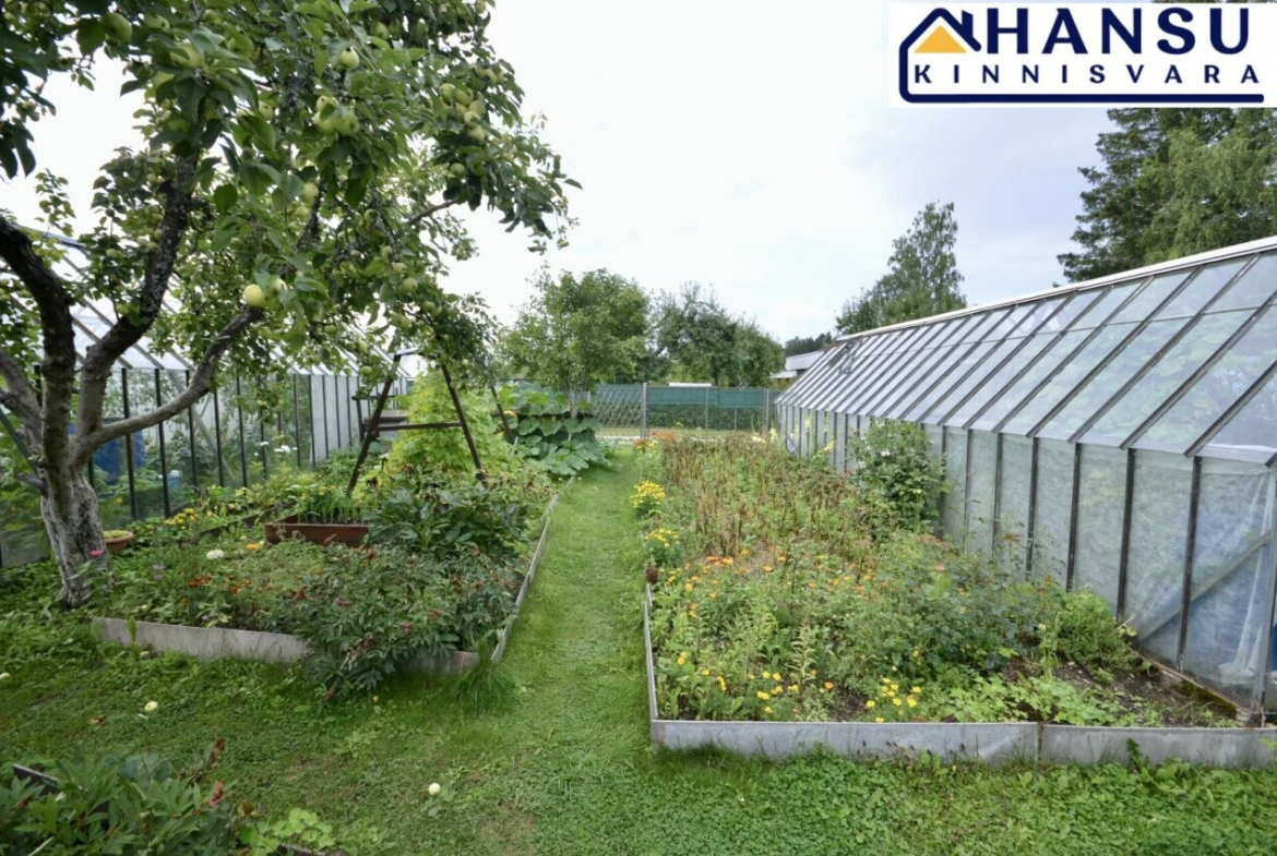 2 kasvuhoonet, puurkaev, puuviljad ja marjapõõsad.