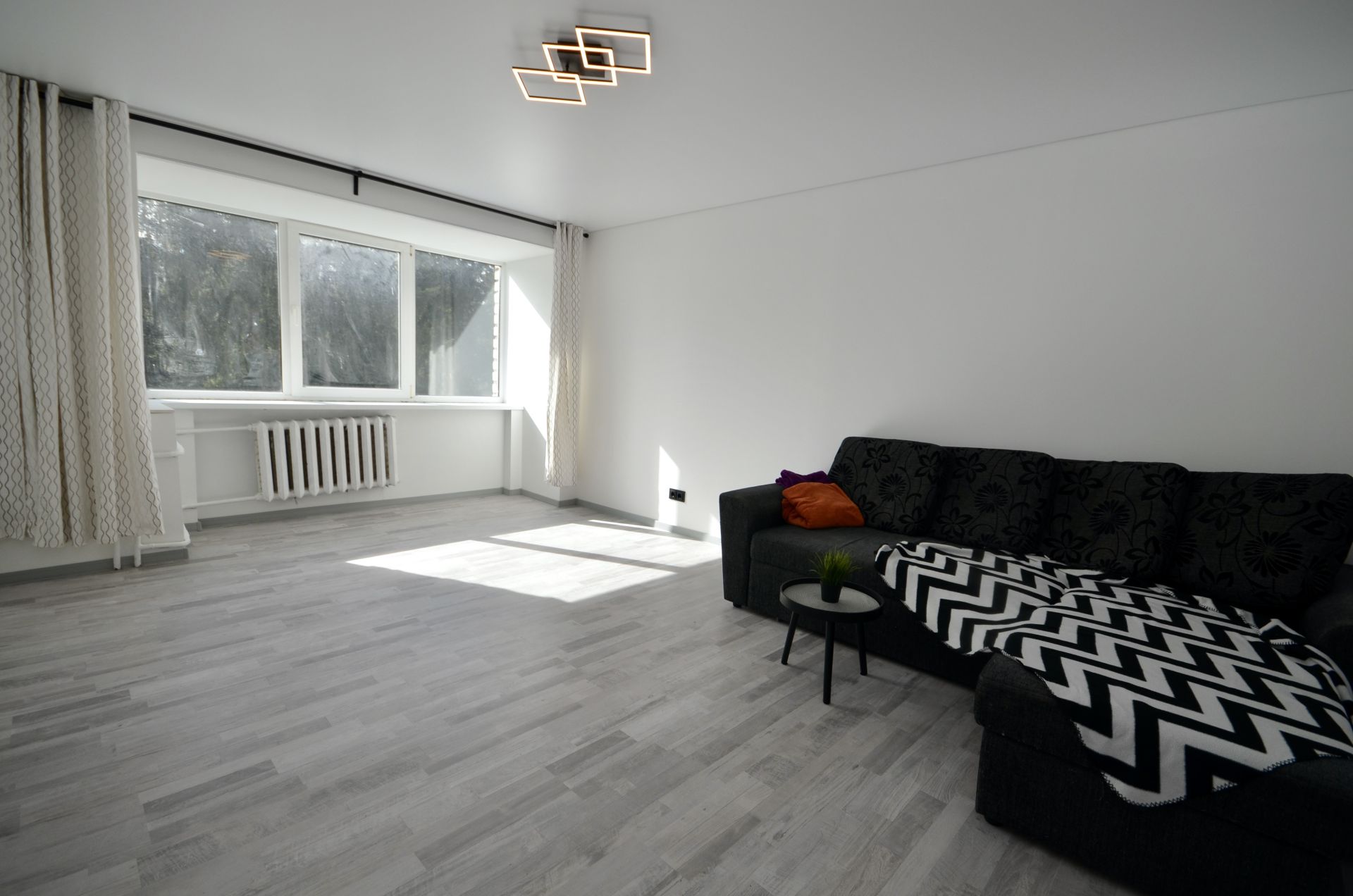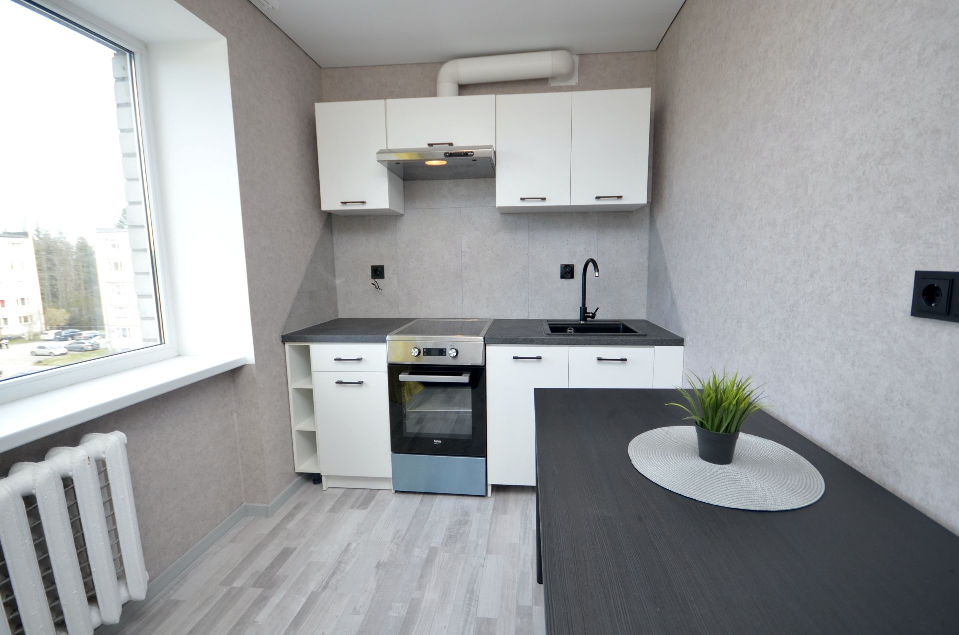 Korteris on tehtud kapitaalne renoveerimine, mille käigus vahetati elektrijuhtmestik, sirgendati ja tapeediti seinad, paigaldati pinglagi varjatud profiiliga ning põrandale laminaatparkett.