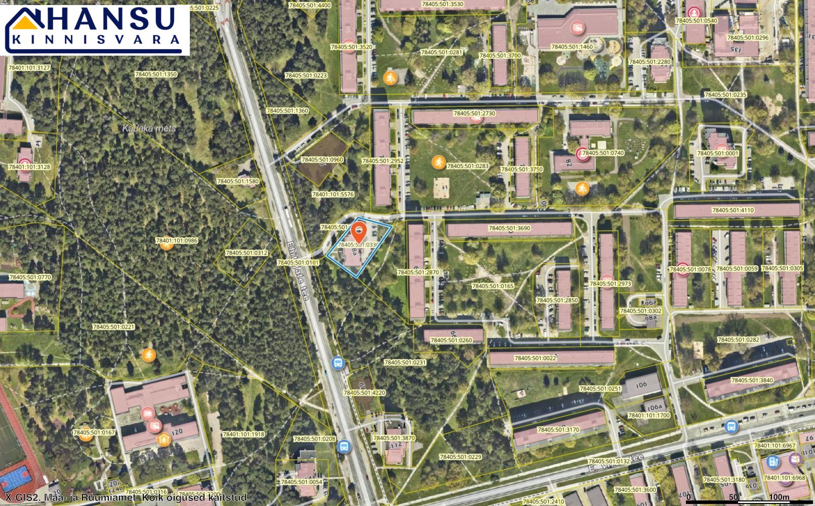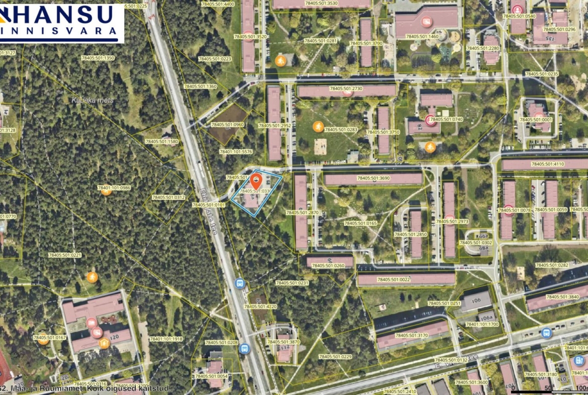 Erinevad kaubanduskeskused on jalutuskäigu kaugusel — Kadaka Selver ja Mustika Prisma. Tallinna Tehnikaülikooli jõuab jalgsi 10–15 minutiga.