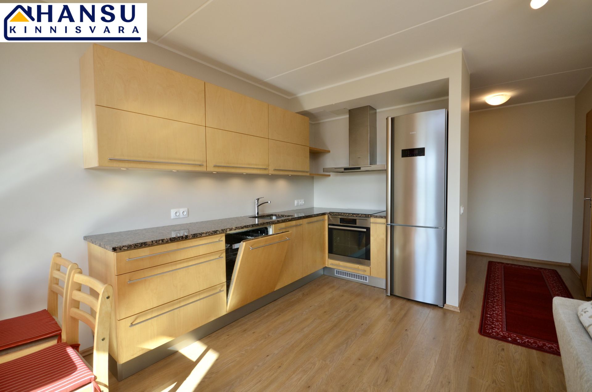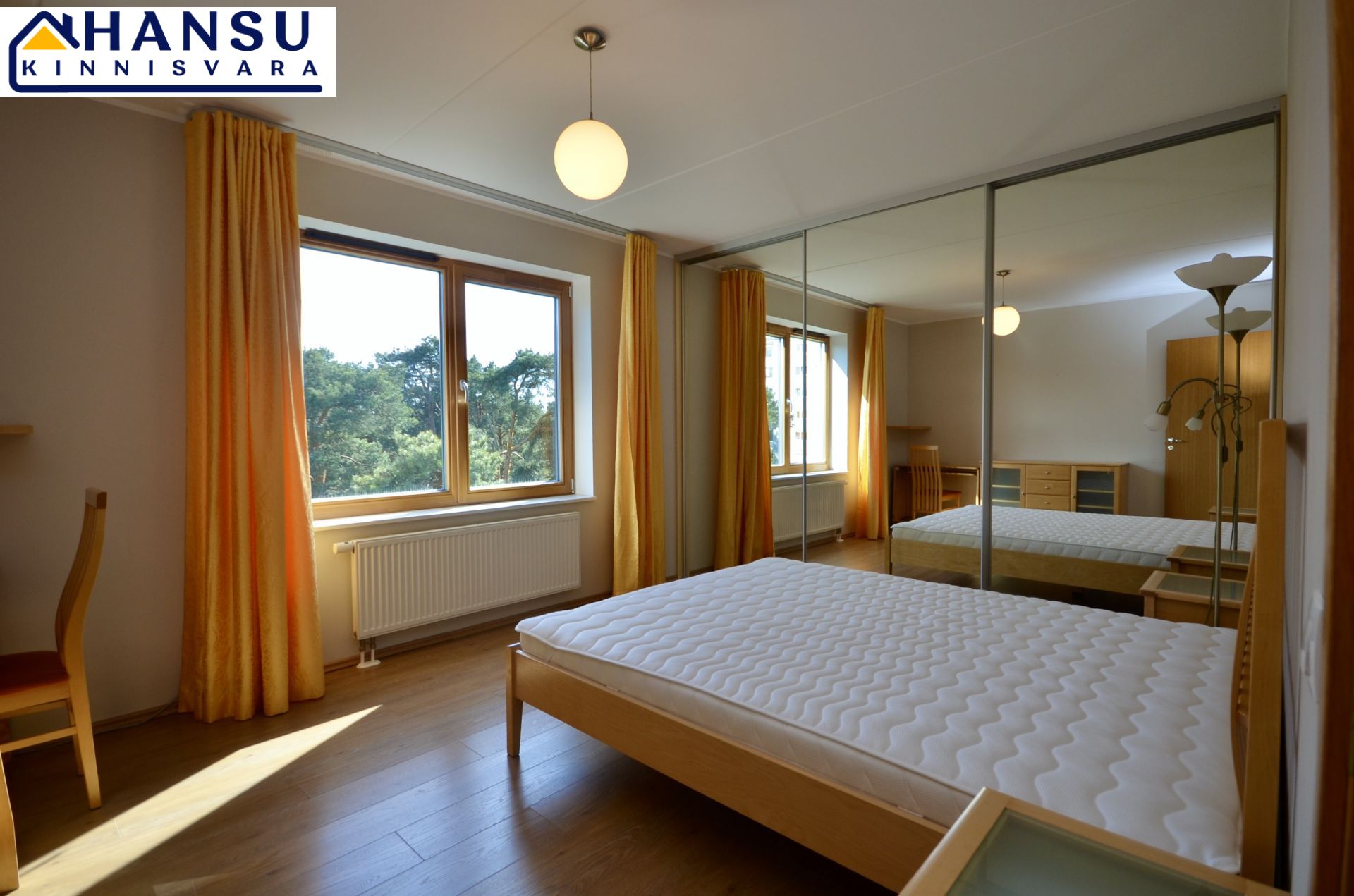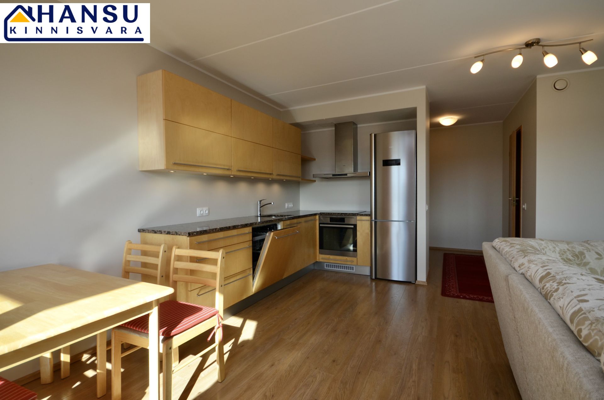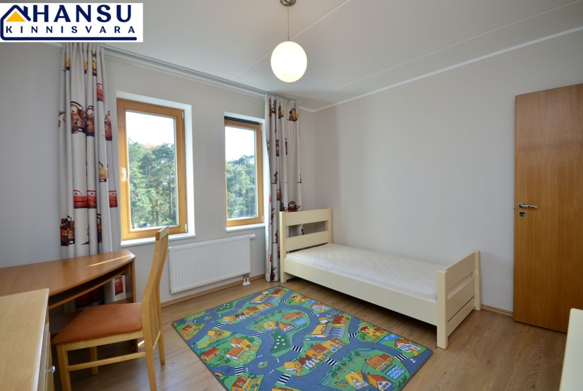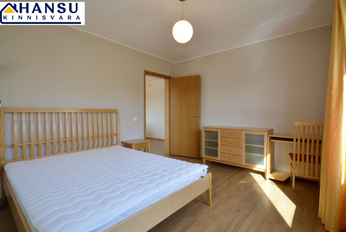 Köök on sisustatud kvaliteetse AEG tehnikaga ning köögimööbliga. Magamistoas on suur lükandukseline sisseehitatud riidekapp ning mõlemas magamistoas on voodid. Kõik piltidel nähtav mööbel jääb korterisse.