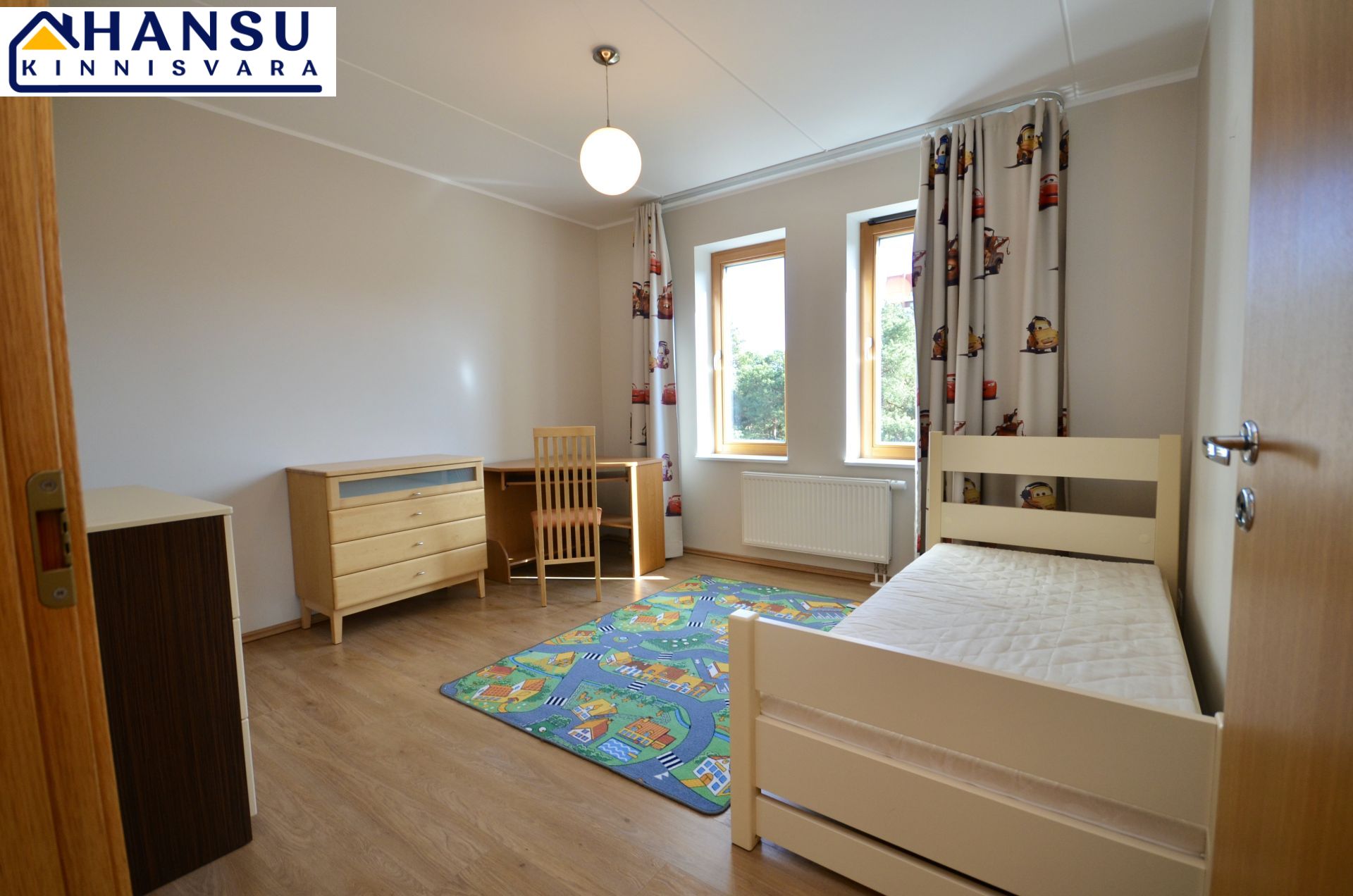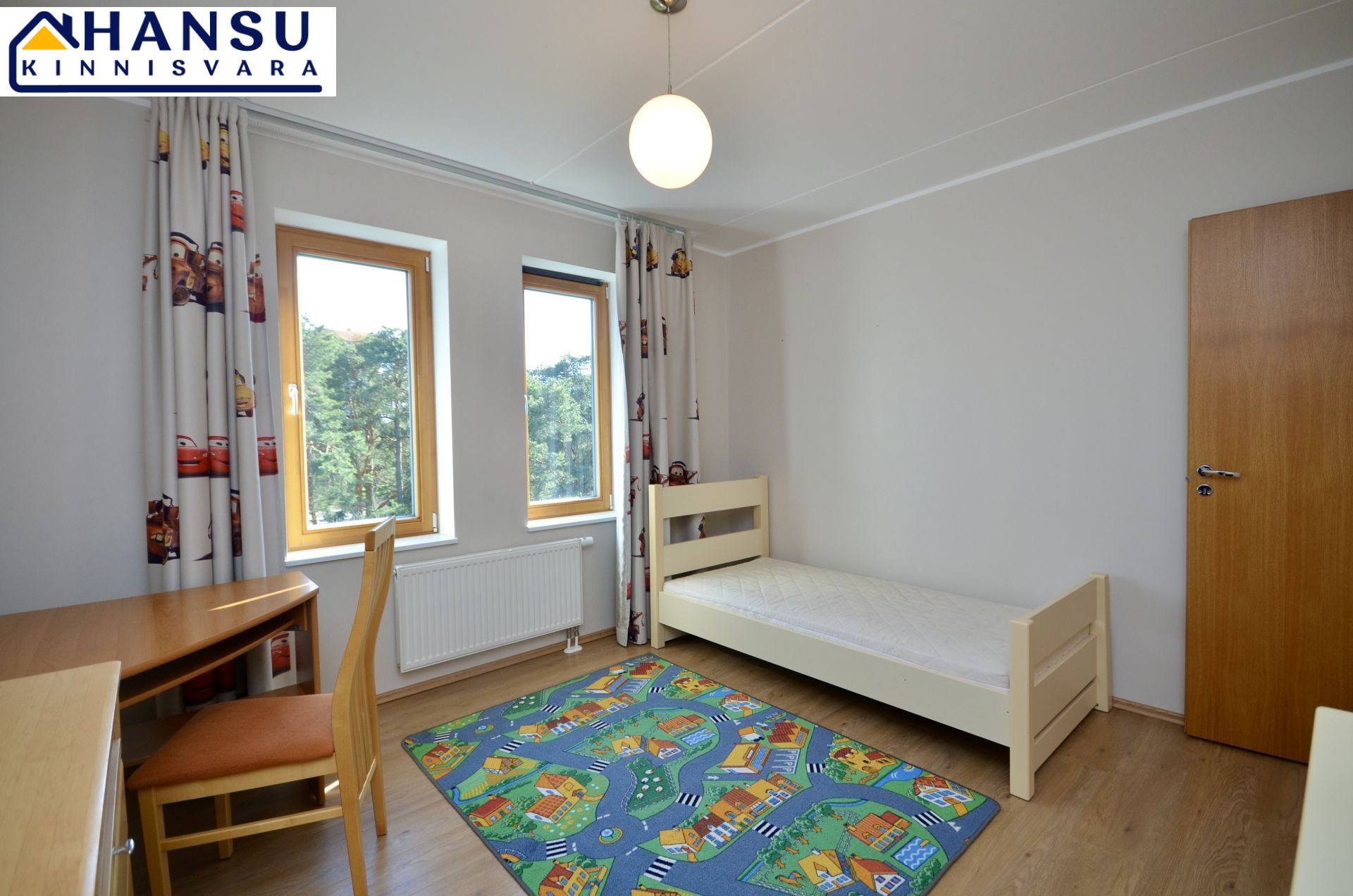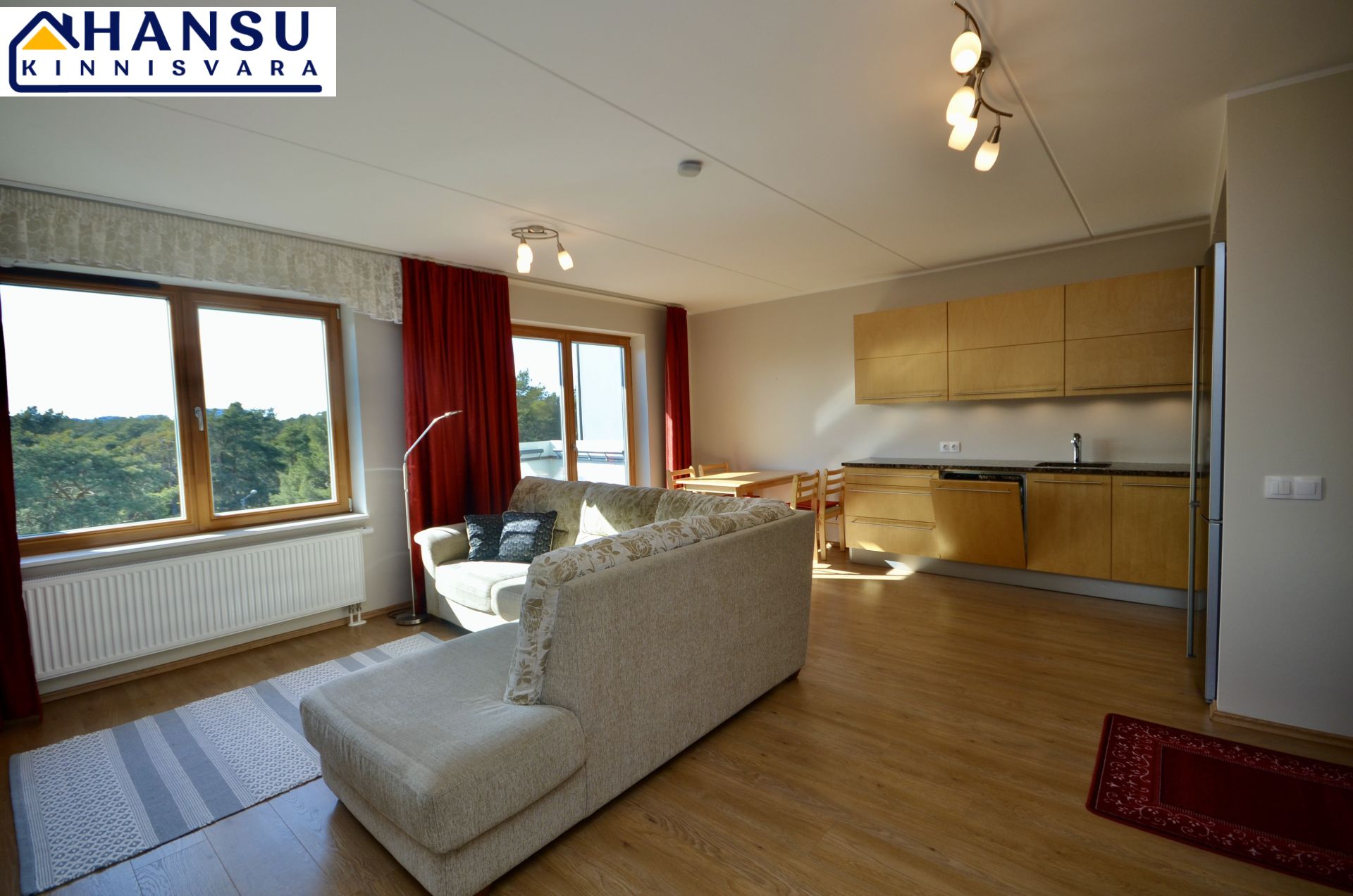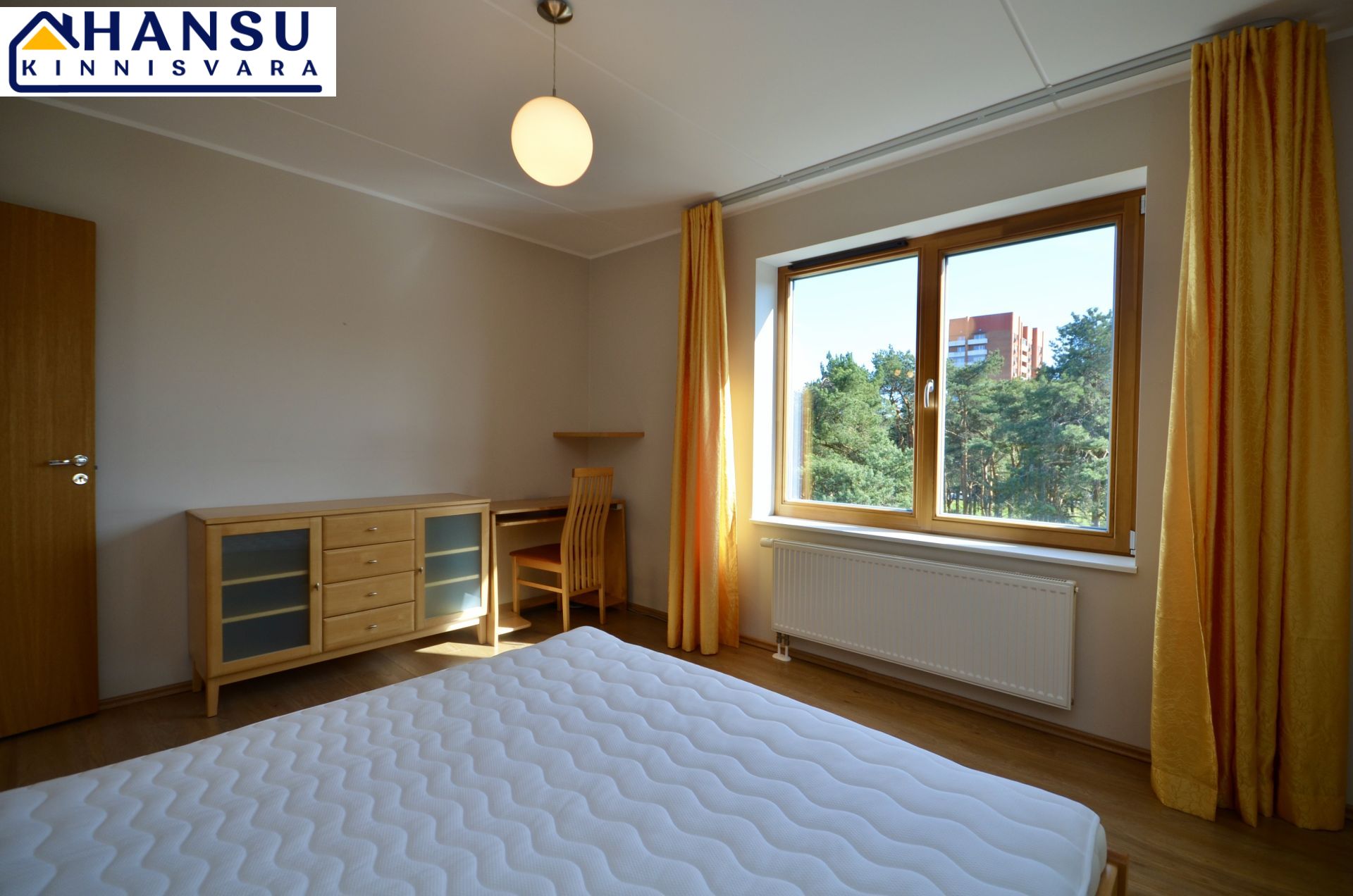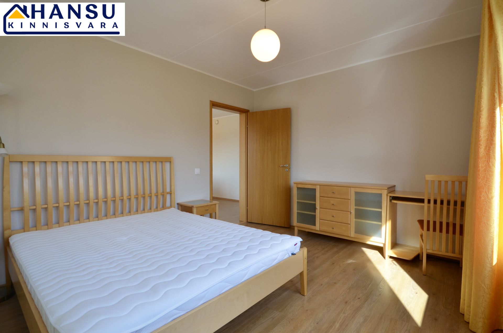 Köök on sisustatud kvaliteetse AEG tehnikaga ning köögimööbliga. Magamistoas on suur lükandukseline sisseehitatud riidekapp ning mõlemas magamistoas on voodid. Kõik piltidel nähtav mööbel jääb korterisse.