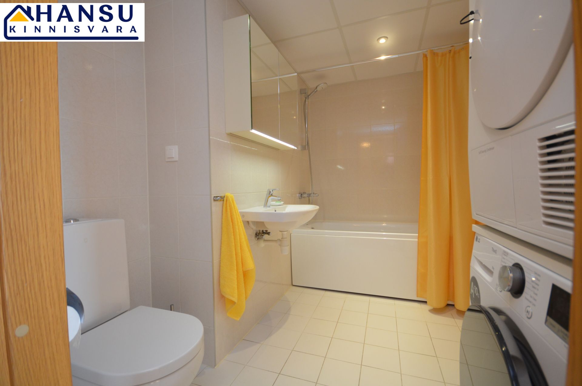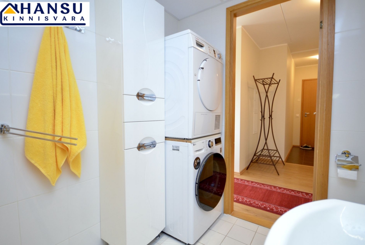 Vannituppa on paigaldatud LG pesumasin, pesukuivatusmasin, vann.